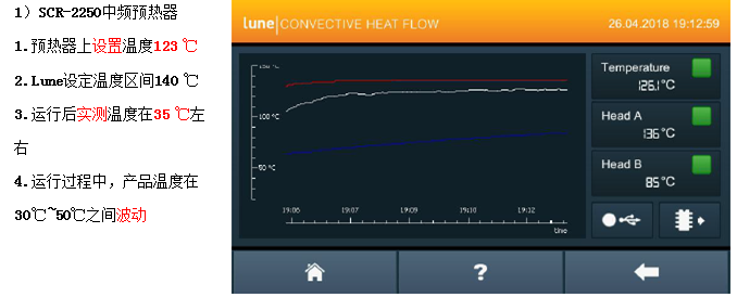 1.中頻預(yù)熱器SCR-2250溫度設(shè)定值(140℃)與Lune測(cè)溫儀實(shí)測(cè)值(35℃)偏差較大,且運(yùn)行過(guò)程中產(chǎn)品溫度存在波動(dòng),預(yù)熱實(shí)際溫度過(guò)低可能導(dǎo)致擠出工序產(chǎn)品質(zhì)量問(wèn)題