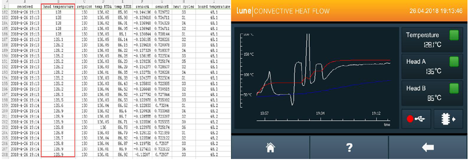 2.系統(tǒng)自動(dòng)生成的溫度曲線趨勢(shì)圖也能夠直觀看到產(chǎn)品進(jìn)機(jī)頭時(shí)的溫度趨勢(shì)變化。