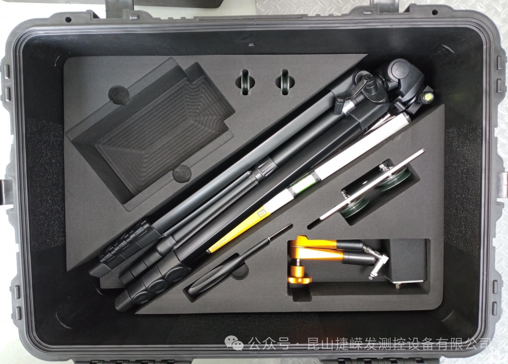 本設(shè)備由箱體、EVA 抗震內(nèi)襯、平板電腦、激光計米器、升降支架、UPS 電源、無線路由器、信號線、充電器組成。箱體為 PP 工程塑料注塑而成,抗震防摔防水,內(nèi)部為雙層防震泡棉,如下圖: