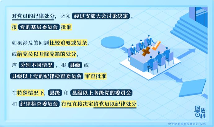 對黨員的紀(jì)律處分,必須經(jīng)過支部大會討論決定,報黨的基層委員會批準(zhǔn);