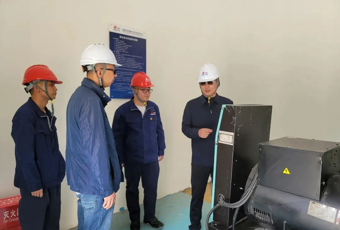 集團(tuán)黨委副書記、副董事長(zhǎng)、總經(jīng)理劉剛(右一)嘎堆水電站開展安全生產(chǎn)檢查。