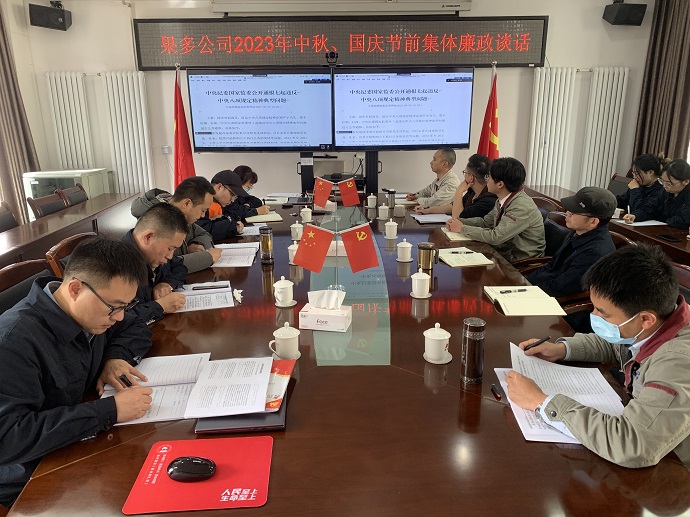 為進(jìn)一步落實黨風(fēng)廉政建設(shè)主體責(zé)任,強化落實中央八項規(guī)定精神,進(jìn)一步改進(jìn)作風(fēng),確保廉潔文明過節(jié),在中秋、國慶雙節(jié)來臨之際,中共西藏開投果多水電有限公司支部委員會組織全體干部職工開展節(jié)前集體廉政談話。