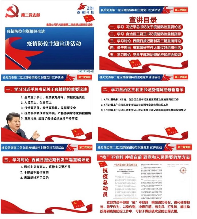 為貫徹落實(shí)區(qū)黨委和區(qū)政府國資委黨委近期工作部署、集團(tuán)公司黨委具體工作要求,結(jié)合疫情防控工作實(shí)際,9月6日下午,中共西藏開發(fā)投資集團(tuán)有限公司機(jī)關(guān)第二支部委員會(huì)組織全體黨員開展疫情防控主題黨日宣講活動(dòng)。受疫情影響,活動(dòng)以網(wǎng)絡(luò)視頻形式召開。集團(tuán)公司黨委委員、副總經(jīng)理、工會(huì)主席、機(jī)關(guān)黨委書記溫勇同志以普通黨員身份參加活動(dòng)。