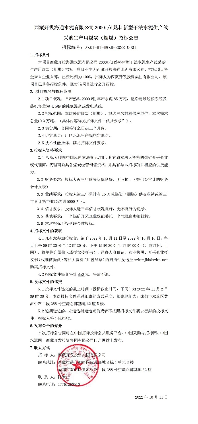 采購生產(chǎn)用煤炭(煙煤)招標公告