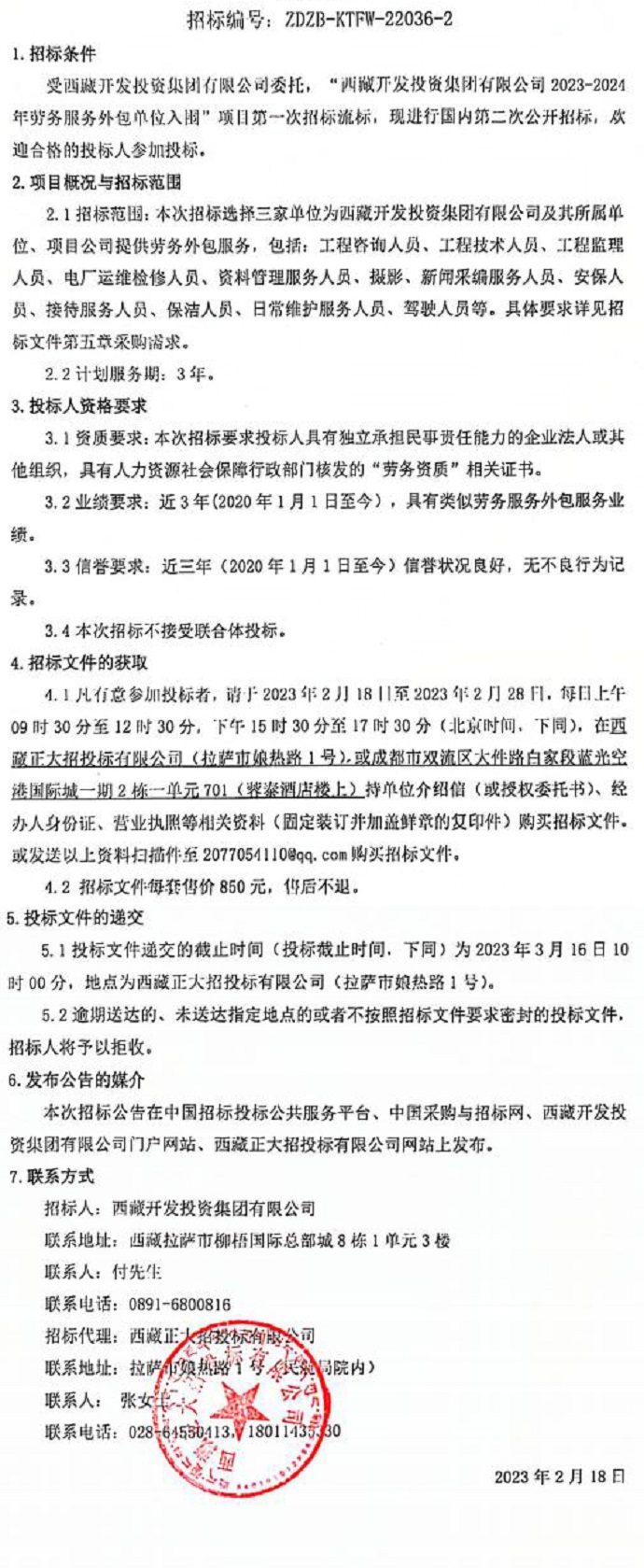 西藏開(kāi)發(fā)投資集團(tuán)有限公司2023-2024年勞務(wù)服務(wù)外包單位入圍招標(biāo)公告