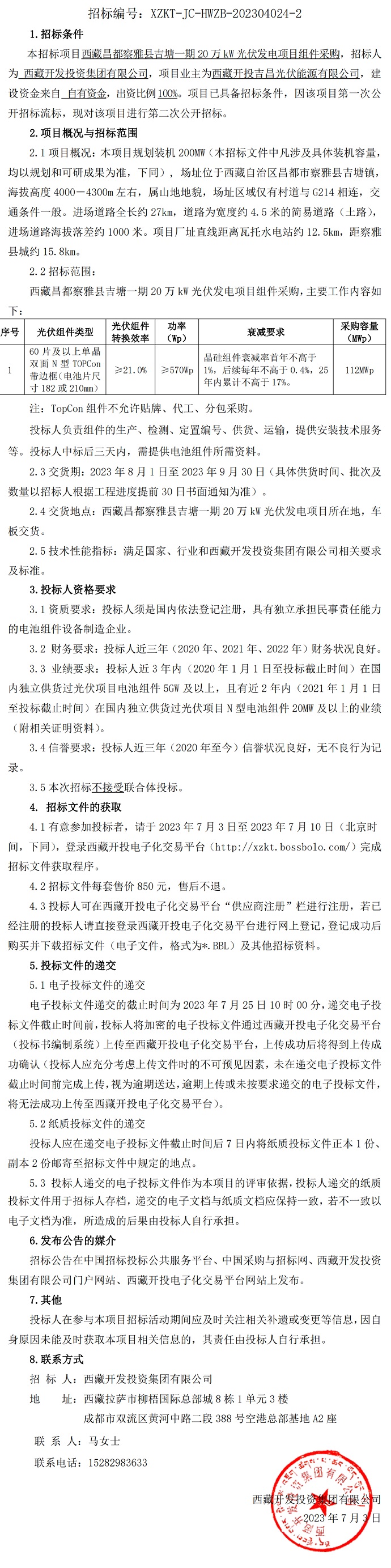 西藏昌都察雅縣吉塘一期20萬kW光伏發(fā)電項(xiàng)目組件采購(gòu)