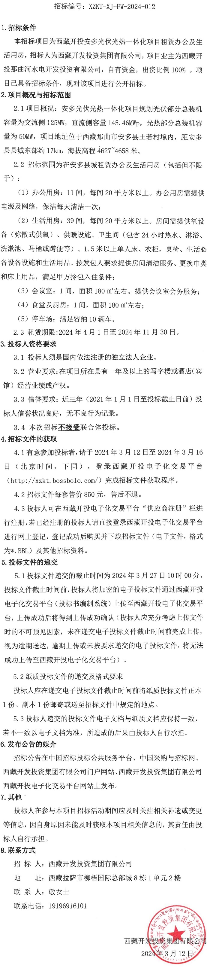 西藏開(kāi)投安多光伏光熱一體化項(xiàng)目租賃辦公及生活用房招標(biāo)公告