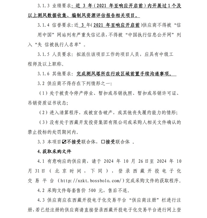 西藏開投薩嘎20ML風電項目測風技術服務詢價采購公告(第二次)