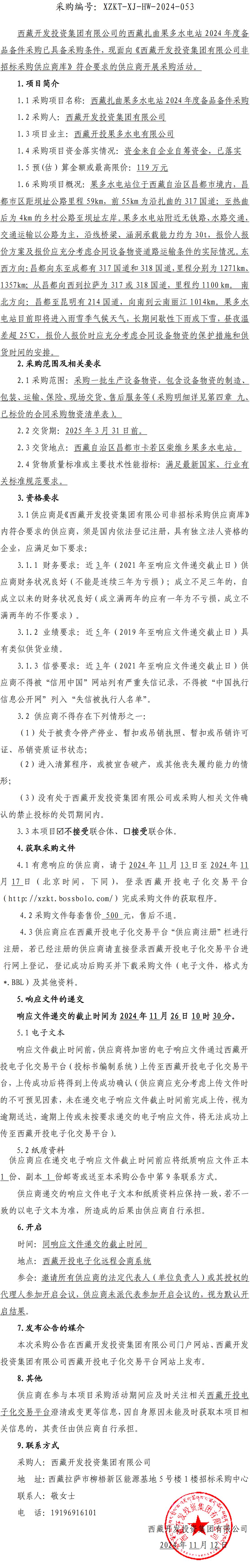 西藏扎曲果多水電站 2024 年度備品備件采購(gòu)詢價(jià)采購(gòu)公告
