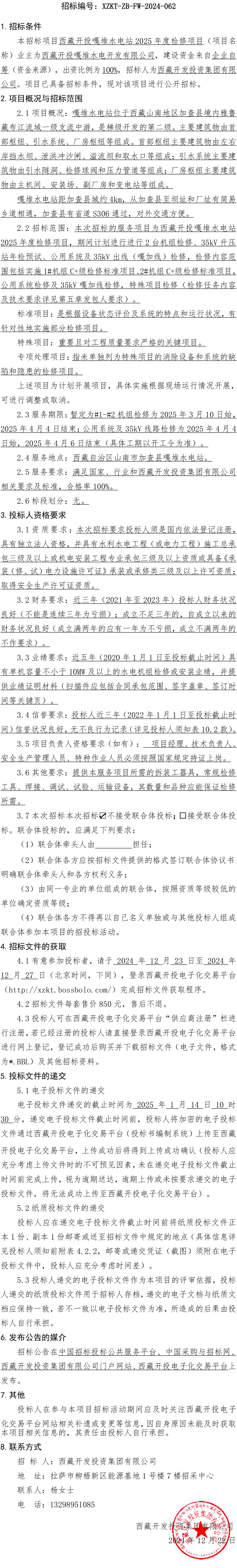 西藏開(kāi)投嘎堆水電站2025年度檢修項(xiàng)目招標(biāo)公告