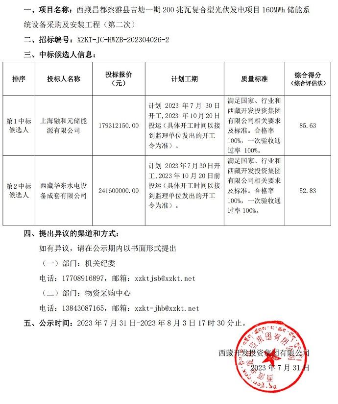 中標(biāo)候選人公示