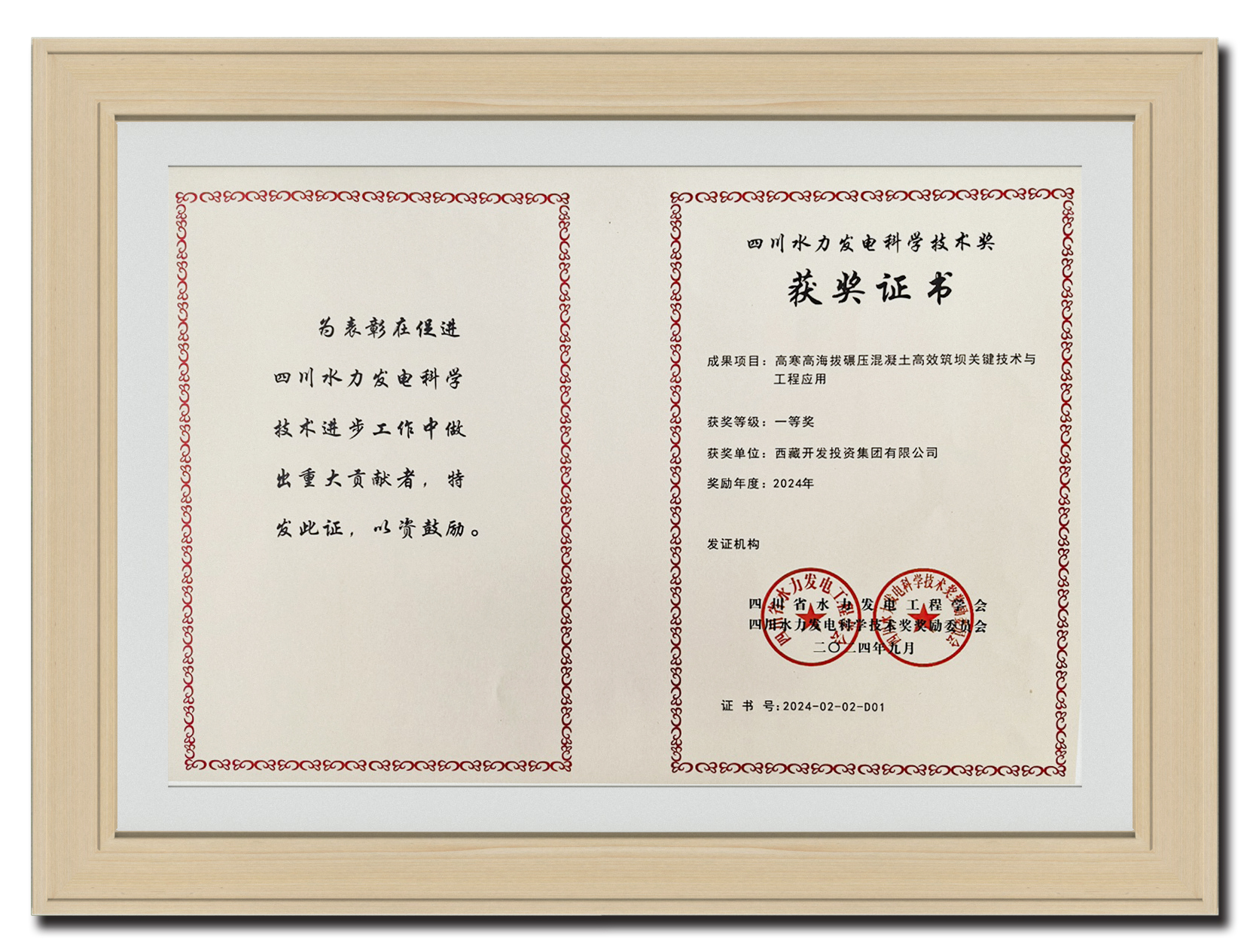 2024年9月 果多水電站“高寒高海拔碾壓混凝土高效筑壩關(guān)鍵技術(shù)與工程應(yīng)用”榮獲四川水力發(fā)電科學(xué)技術(shù)一等獎