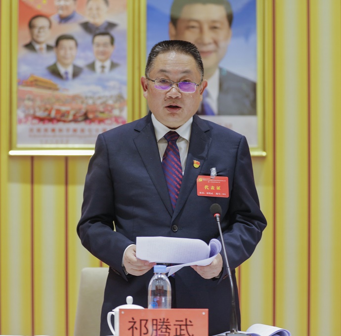 在熱烈的掌聲中,祁騰武向大會作報告。報告共分五個部分:一、工作回顧;二、當(dāng)前形勢和任務(wù);三、今后工作指導(dǎo)思想和發(fā)展目標(biāo);四、當(dāng)前和今后一段時間的重點(diǎn)工作;五、全面加強(qiáng)黨的建設(shè)。