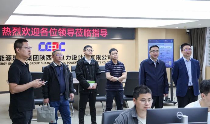 溫勇一行在中國(guó)能建陜西電力設(shè)計(jì)院考察調(diào)研。