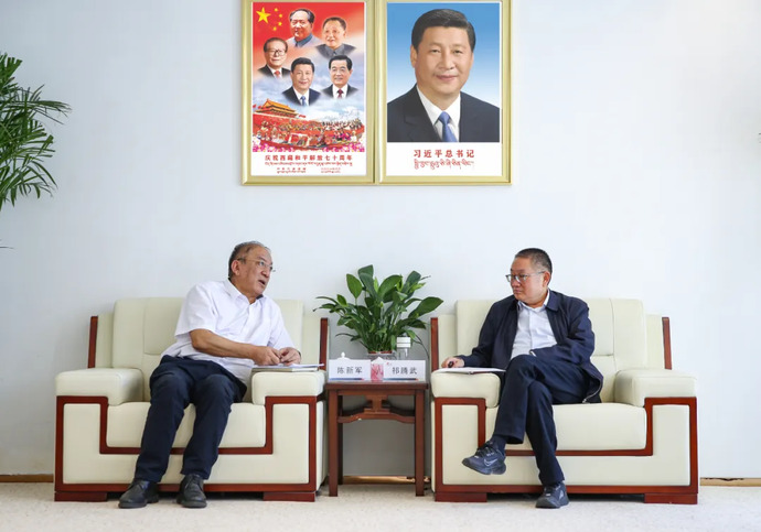 7月7日,西藏開投集團黨委書記、董事長祁騰武在拉薩與中國能建中南電力設(shè)計院黨委書記、董事長陳新軍舉行座談。西藏開投集團黨委委員、副總經(jīng)理鄧強,中國能建中南電力設(shè)計院黨委委員、副總經(jīng)理殷幼軍等參加。