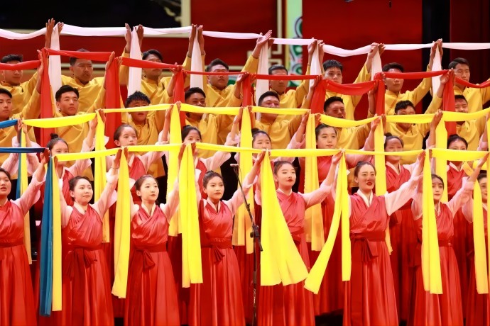 “朋友!你到過黃河嗎?你渡過黃河嗎?你還記得河上的船夫拼著性命和驚濤駭浪搏戰(zhàn)的情景嗎?如果你已經忘掉的話,那么你聽吧!”由58人組成的西藏開投集團參賽隊以一曲《保衛(wèi)黃河》,唱響了黨領導全國人民走過的風雨歷程,唱出了戰(zhàn)勝敵人、奪取勝利的激情。