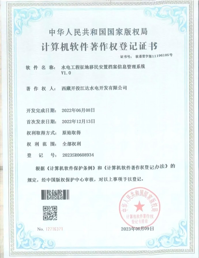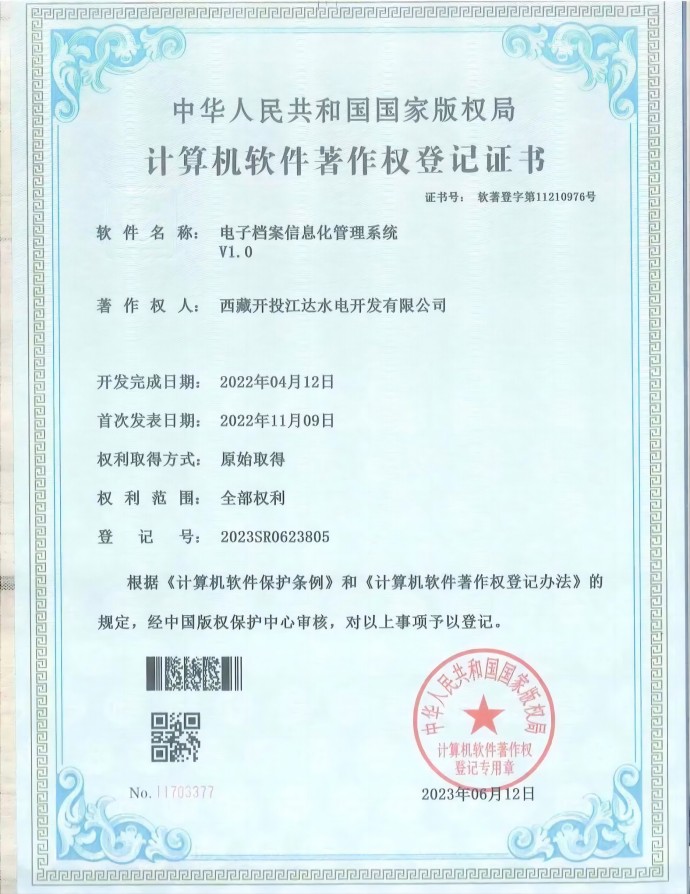 近日,經(jīng)中國版權(quán)保護(hù)中心審核,集團(tuán)公司所屬項(xiàng)目公司申報(bào)的三項(xiàng)軟件著作權(quán)符合《計(jì)算機(jī)軟件保護(hù)條例》和《計(jì)算機(jī)軟件著作權(quán)登記辦法》的相關(guān)規(guī)定,被正式授予計(jì)算機(jī)軟件著作權(quán)登記證書。本次取得證書的3項(xiàng)軟件分別是“安全生產(chǎn)信息系統(tǒng)管理平臺(tái)V1.0”“電子檔案信息化管理系統(tǒng)V1.0”“水電工程征地移民安置檔案信息管理系統(tǒng)V1.0”。