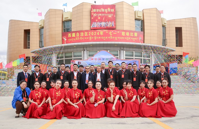 6月28日晚,西藏阿里群眾文化藝術(shù)館人潮涌動(dòng),歌聲飛揚(yáng)。由自治區(qū)黨委宣傳部主辦的“西藏自治區(qū)2024年迎‘七一’暨‘唱支山歌給黨聽(tīng)’紅色歌曲歌詠比賽決賽正式拉開(kāi)帷幕,共有來(lái)自全區(qū)不同單位行業(yè)的15支代表隊(duì)伍同臺(tái)競(jìng)技,共同獻(xiàn)禮黨的百年華誕。當(dāng)晚21時(shí),開(kāi)幕式準(zhǔn)時(shí)開(kāi)始。在多彩燈光的映襯下,象雄古韻·天上阿里的原生態(tài)和《再唱山歌給黨聽(tīng)》《沒(méi)有共產(chǎn)黨就沒(méi)有新中國(guó)》《我和我的祖國(guó)》等一曲曲耳熟能詳?shù)募t色歌曲交相輝映、相繼登場(chǎng),將全區(qū)各族兒女和廣大黨員干部職工愛(ài)黨愛(ài)國(guó)愛(ài)藏的情懷淋漓盡致展現(xiàn)。