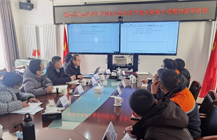 果多水電公司向督導(dǎo)組匯報(bào)了2022年電力安全生產(chǎn)工作情況及歲末年初電力安全生產(chǎn)重大風(fēng)險(xiǎn)隱患專(zhuān)項(xiàng)整治排查工作情況。督導(dǎo)組查閱了果多水電公司關(guān)于上級(jí)文件精神宣貫落實(shí)、電力安全生產(chǎn)風(fēng)險(xiǎn)重大隱患排查整治、迎峰度冬等相關(guān)工作臺(tái)賬,按照《重大電力安全隱患判定標(biāo)準(zhǔn)》對(duì)穩(wěn)定控制系統(tǒng)、繼電保護(hù)系統(tǒng)、升壓站等設(shè)備的運(yùn)行、維護(hù)和檢修情況進(jìn)行了現(xiàn)場(chǎng)督導(dǎo)。
