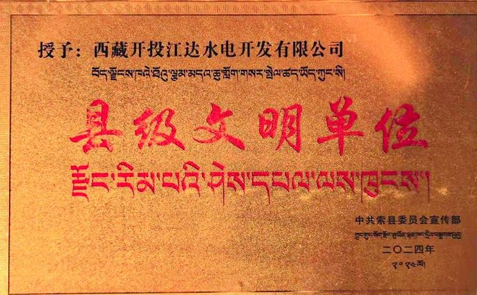 西藏開投江達(dá)水電開發(fā)有限公司獲評(píng)縣級(jí)文明單位