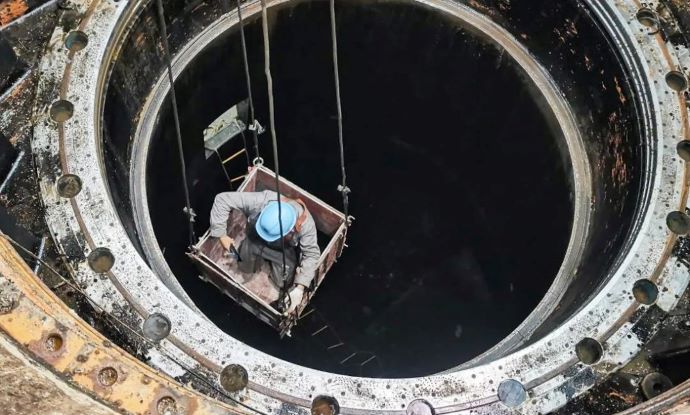 檢查蝸殼及尾水錐管氣蝕情況。羅布多吉 攝