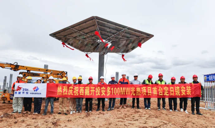 安多土碩100MW光熱項(xiàng)目首臺(tái)定日鏡安裝完成