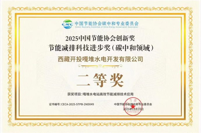 近日,中國(guó)節(jié)能協(xié)會(huì)2025年度創(chuàng)新獎(jiǎng)獲獎(jiǎng)名單正式公布,西藏開投嘎堆水電公司申報(bào)的“嘎堆水電站高效節(jié)能減排技術(shù)應(yīng)用”項(xiàng)目榮獲“節(jié)能減排科技進(jìn)步獎(jiǎng)(碳中和領(lǐng)域) 二等獎(jiǎng)”。