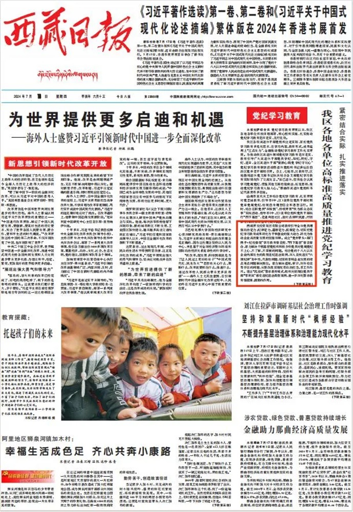 編者按:7月18日,西藏日報報道了《緊密結合實際 扎實推進落實 我區(qū)各地各單位高標準高質量推進黨紀學習教育》文章。摘要如下: