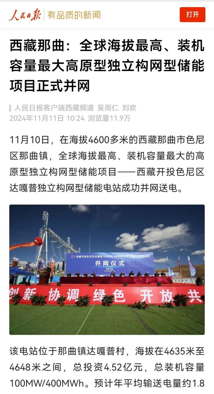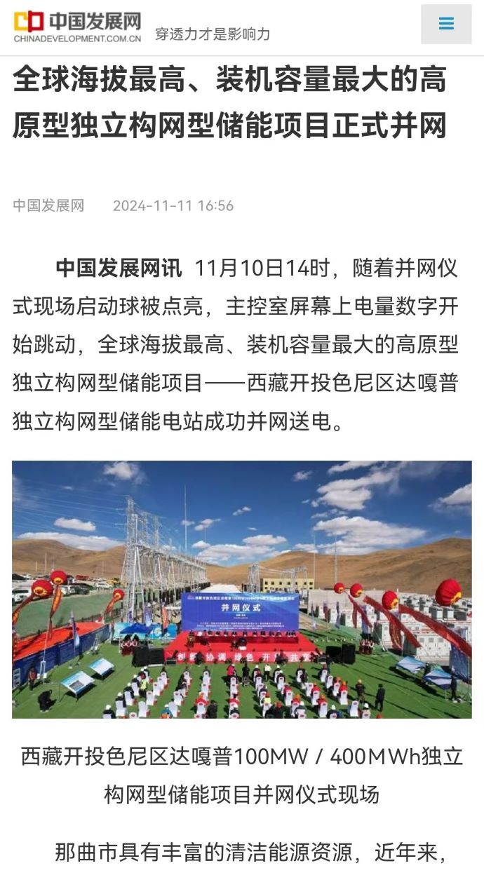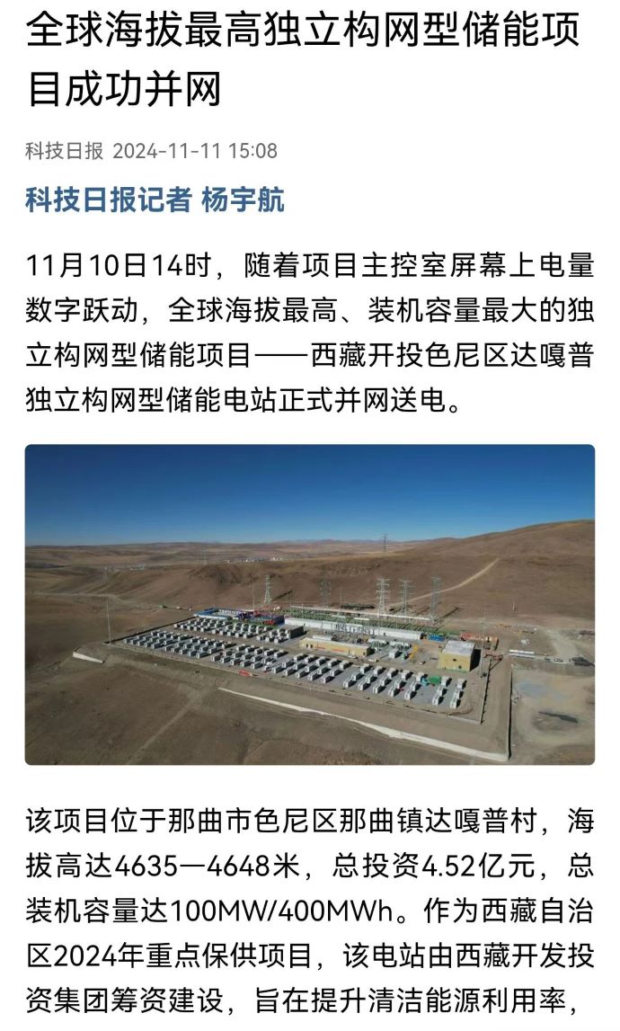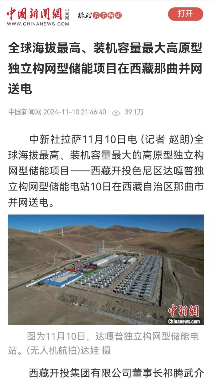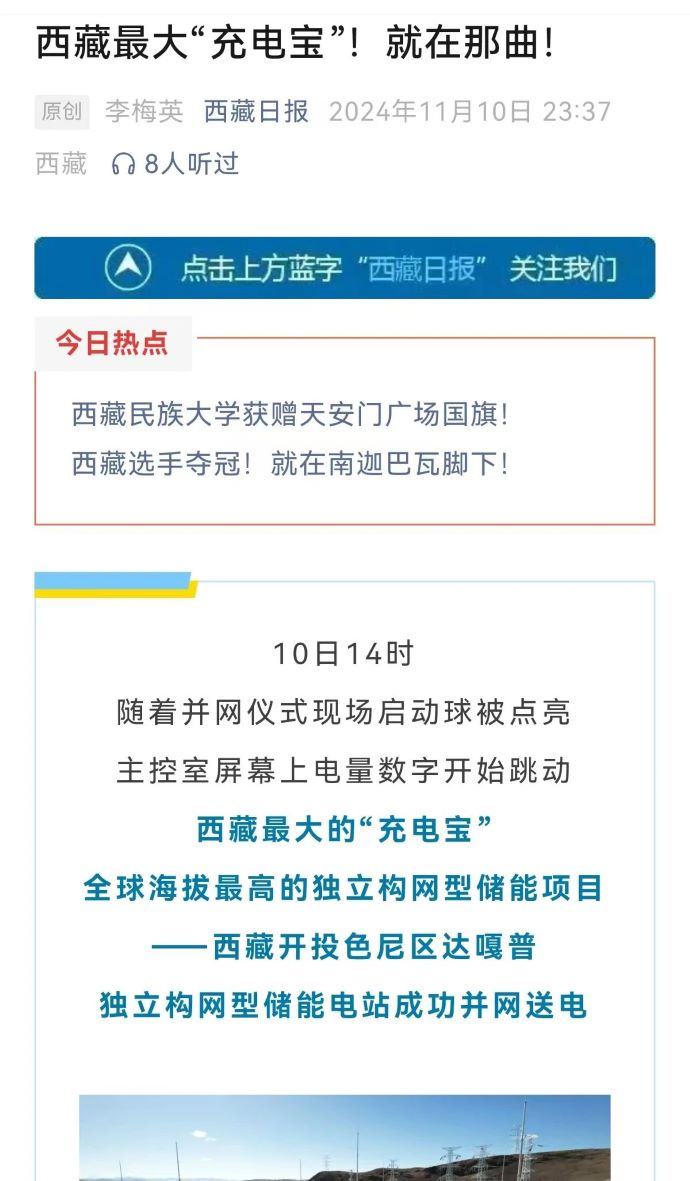 實(shí)力刷屏!各級媒體聚焦報(bào)道西藏開投色尼區(qū)獨(dú)立構(gòu)網(wǎng)型儲(chǔ)能項(xiàng)目