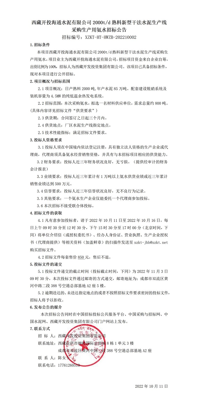 采購生產用氨水招標公告