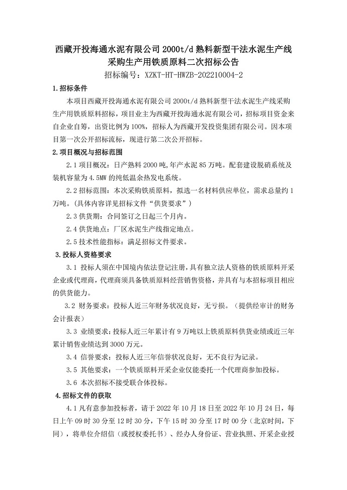 采購生產(chǎn)用鐵質(zhì)原料二次招標(biāo)公告