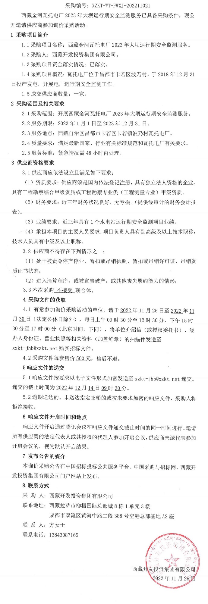 西藏金河瓦托電廠2023年大壩運(yùn)行期安全監(jiān)測(cè)服務(wù)