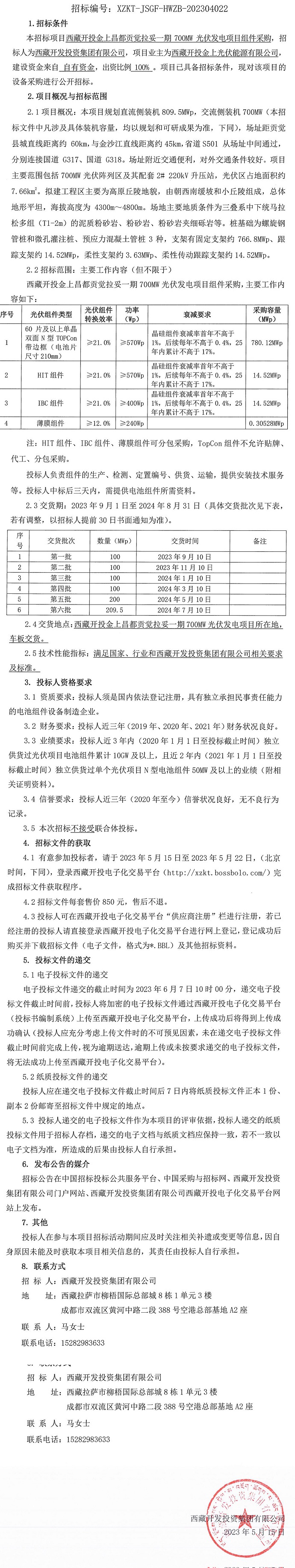 西藏開投金上昌都貢覺(jué)拉妥一期700MW光伏發(fā)電項(xiàng)目組件采購(gòu)招標(biāo)公告