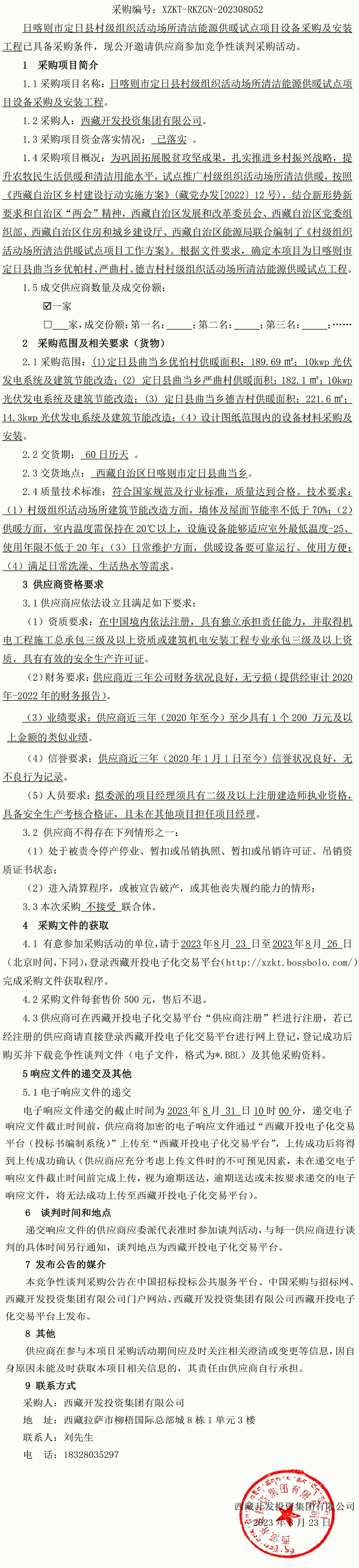 日喀則市定日縣村級組織活動場所清潔能源供暖試點項目 設備采購及安裝工程競爭性談判采購公告