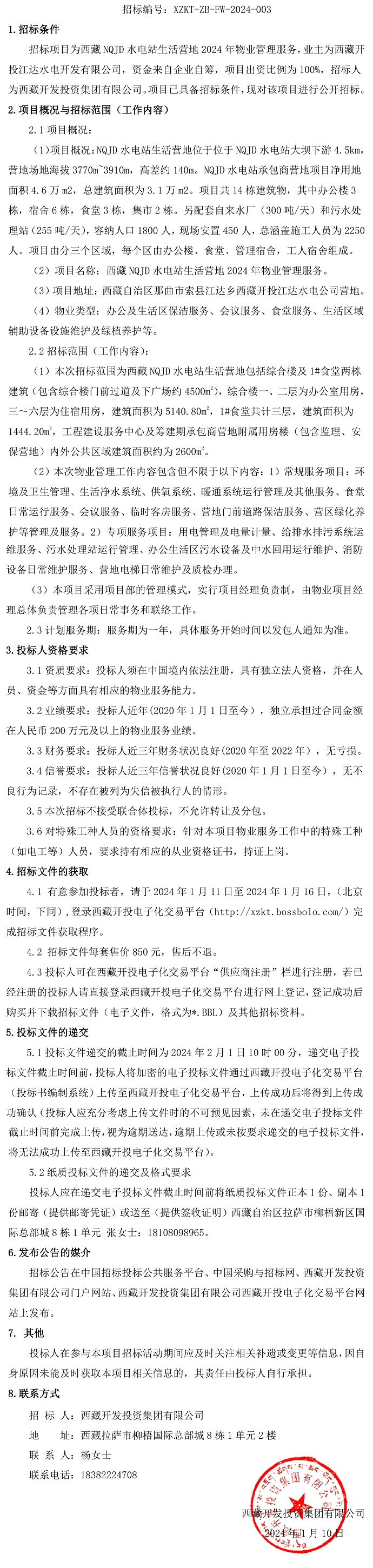 西藏 NQJD 水電站生活營(yíng)地 2024 年物業(yè)管理服務(wù)招標(biāo)公告