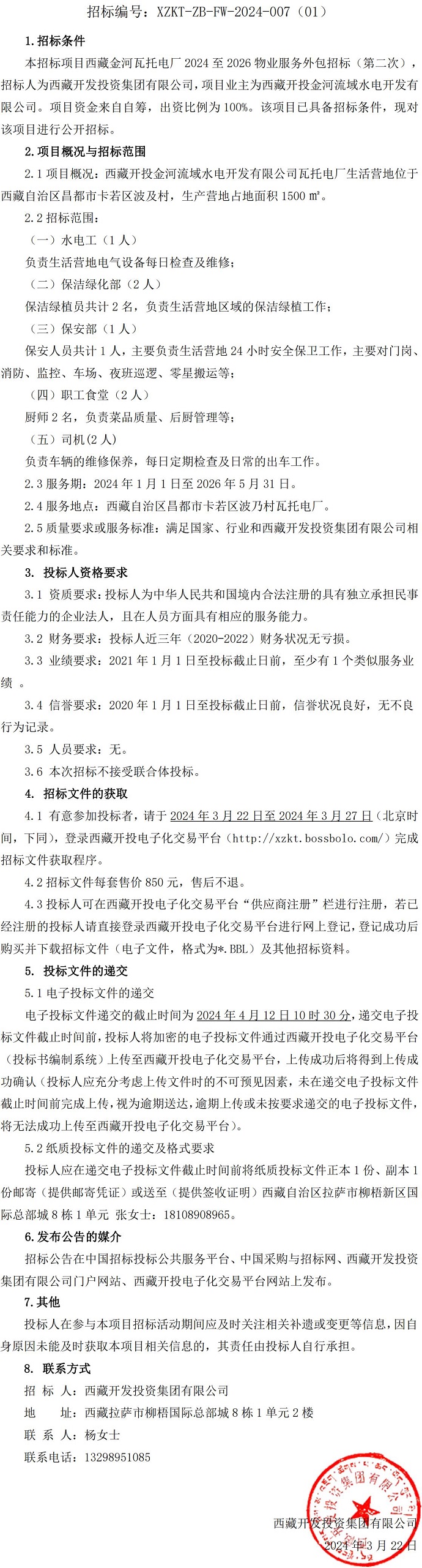 西藏金河瓦托電廠2024至2026物業(yè)服務(wù)外包