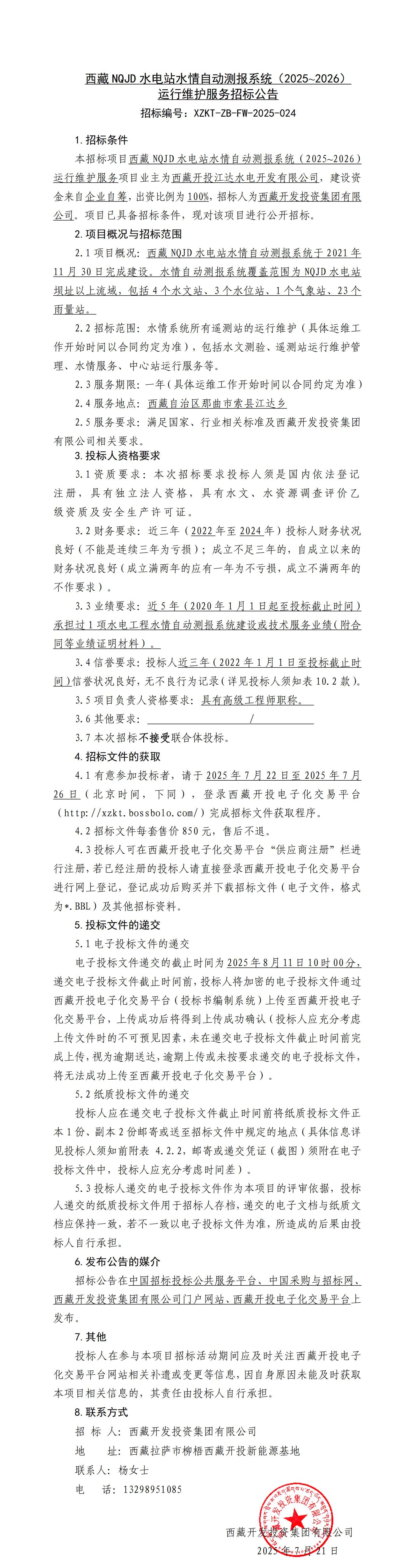 西藏NQJD水電站水情自動測報系統(tǒng)(2025~2026)運行維護服務(wù)招標公告