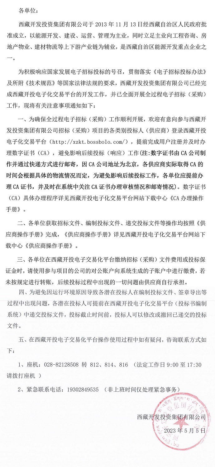 關(guān)于西藏開(kāi)投電子化交易平臺(tái)操作使用方面注意事項(xiàng)的通知